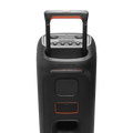 JBL 320 comes with amazing feature of 2hrs of playtime with just 10mins of charging, hence no worry about the party stopping mid-song.The telescopic handle and wide, sturdy wheels, ensure the JBL PartyBox 320 can be easily transported